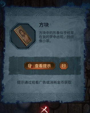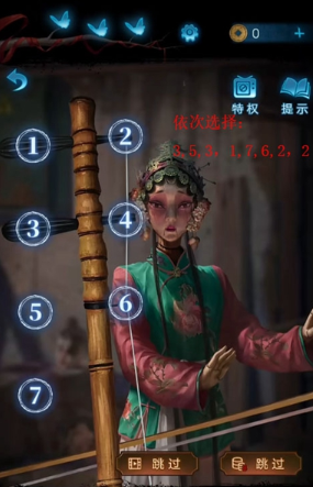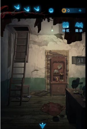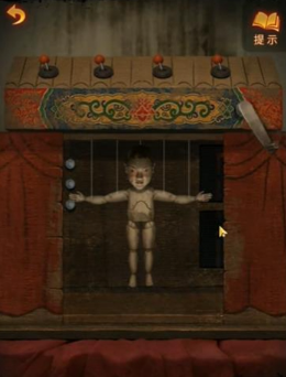11、用剪刀剪开柜子上的红绳得到卡片,使用铁钩框柱窗台后得到第二个卡片,进入心理测试阶段,等待第二天返回使用望远镜查看窗户外面,完成测试后一皮影树木二木偶照镜子三两个木偶四木偶五脸谱六神龛七剪纸八石人九蝴蝶十布偶得到锤子敲,剩下的就是过剧情了。
