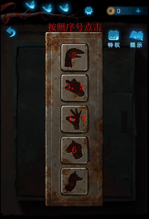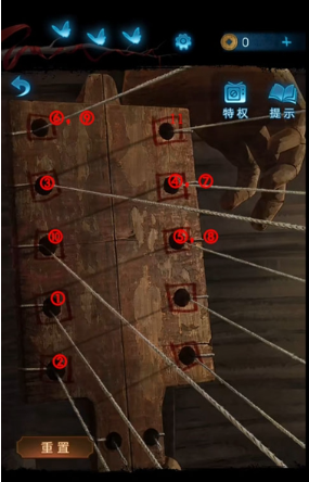 13、这时是第三个解密场景,用户根据图片序号点击拉绳子方向。