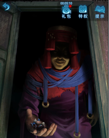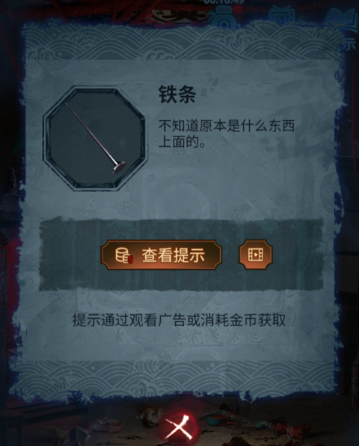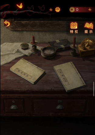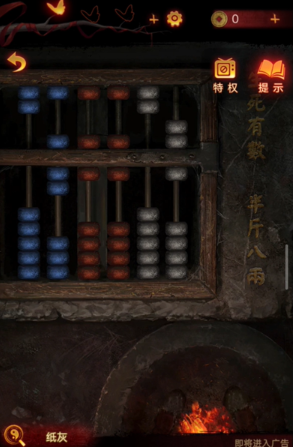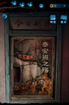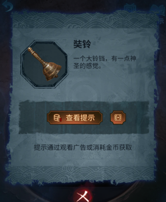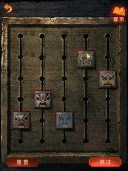 7、接下来直接将纸钱放到火堆树上开花,观察花瓣的颜色来调整海报上的面具,随后使用铁钩固定住位置,得到牌位,并将牌位放入神龛,获得望远镜。