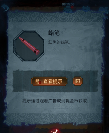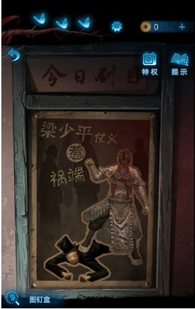 4、这时使用画笔点击木偶头的眼睛(此处有高能),完成步骤得得到房顶饰品,回到算盘处一键使用房顶饰品,获得刀币。