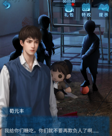 4、接下来离开房间后,点击下方的箭头,进入到教室场景,将糖果人偶附近的孩子们,即可获得“皮球”和“大纽扣”。