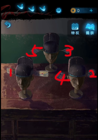 6、进入这条路口后,在第二个场景点搜索到的线索来解谜此处场景(按照序号来拨动帽子)。