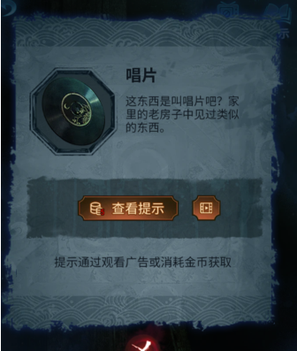 8、返回教室位置,点击左侧黑暗房间,去除房间,在房间中间查看,然后点击左侧靠着的铁棍,获得唱片,将“奘铃”装上。
