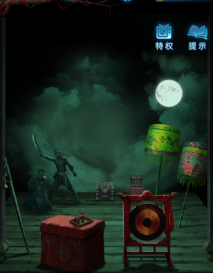 13、移动靠旗放在屋里桌上空缺处,然后就能获得布老虎,把布老虎、靠旗和布球放到供台上就能拿到钥匙,最后使用钥匙开启大门。