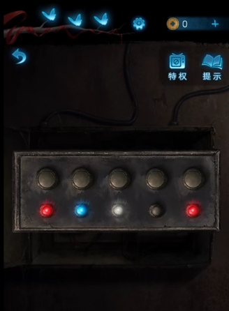 9、根据监控上的灯光,依次按下“红1下、蓝2下、白3下、红5下”。