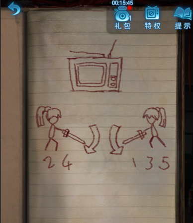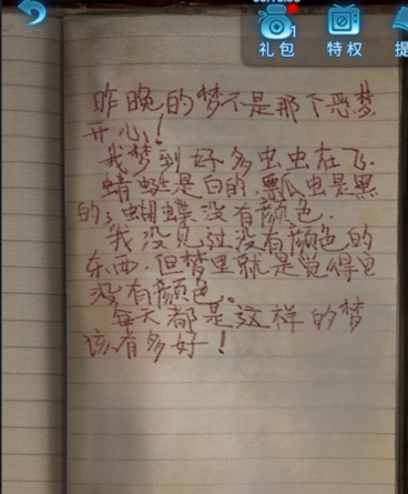 2、然后点击花轿,获得“蜡笔”,观看所获得的日记内容,将电视机顺序放置:左24 右135。电视天线,左长,右短,左边的天线向左,右边的天线右斜方;蜻蜓白色,瓢虫黑色,蝴蝶没有颜色。