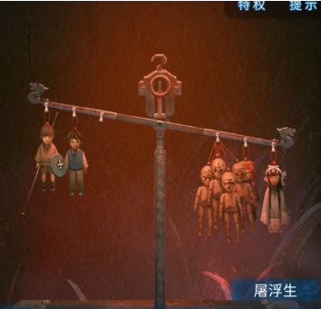 17、离开房间,再次进入到树洞房间,选择桌子放入两个木块,然后回到幻境,将新的木偶放到称竿上,边上的画打开,同时称上再试失衡。