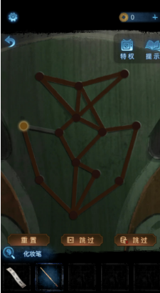 7、前往暗门后的桌上,使用化妆笔蘸取红色颜料把门上的脸谱一笔画完。