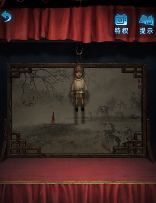 12、转向外面位置,找到戏台,将“玩偶”道具挂在戏台上,幻境破开,在小玩偶的手上放上纽扣和天线。
