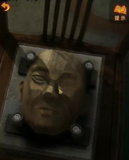 3、假眼睛放在面具上,用书签打开面具下面的护栏罩,把小陶人放进通风口里拿到玻璃球。
