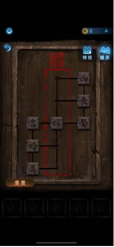 6、再点击座位上的木盒,将文字摆成“奠丧婚吉嫁”后就能开启并获得化妆笔。