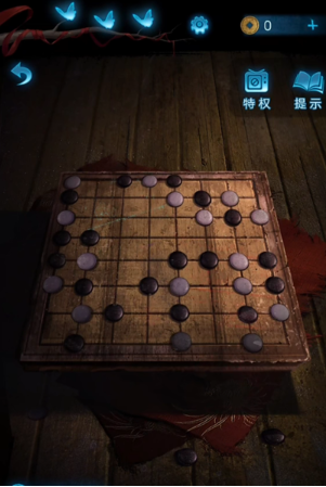 14、进入到全新的房间,点击红色的蝴蝶,按照棋盘颜色来将蝴蝶(蜻蜓白色,瓢虫黑色,蝴蝶没有颜色)位置调整。