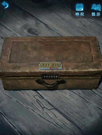 16、完成以上两处顺序步骤,可以获得“小牌子”道具,返回到密码宝箱的位置处,使用小牌子道具,可以看见密码为711070。