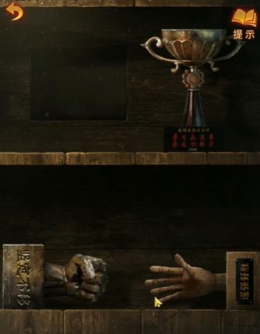 10、用钥匙打开抽屉,里面有拳头摆件、摇把和密码纸条,回到监控处调正木偶手势。