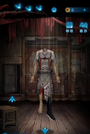 11、第二个场景处有一个悬挂的无头人偶,在它的旁边有一个凳子点击它。