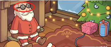 3、双指拖动壁炉中的圣诞老人就可以将其放下来然后把毛巾给圣诞老人就能获得干净的眼镜。