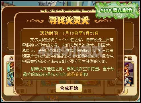 选择第二个图“寻找火灵犬”就可以开始合成了~
