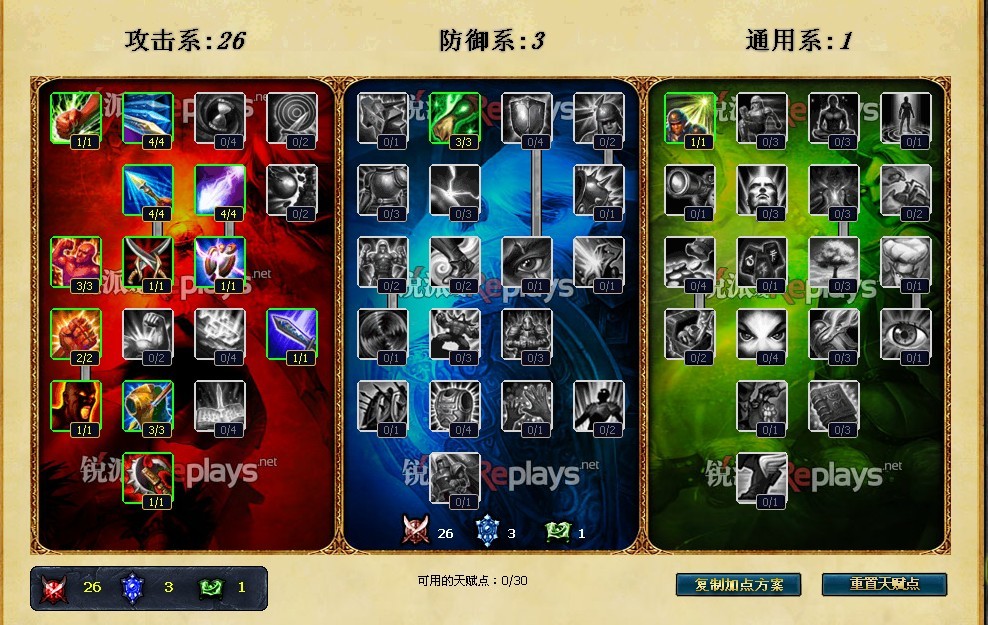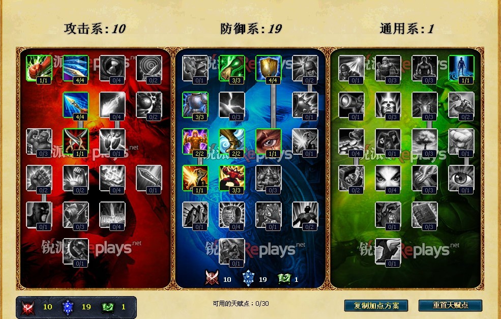 防御系天赋里面很多天赋都难以取舍.所以导致我攻击系天赋和通用系天赋里面没有点任何一点.3点回血我感觉十分强大.然后4点生命成长虽然不好不过我希望点出来下面的老兵伤痕.所以必须得点这些.还有3点防御如果你不点也没有办法。