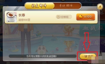 第六步,点击“一键领取”,即可领取好友赠送的游戏豆。