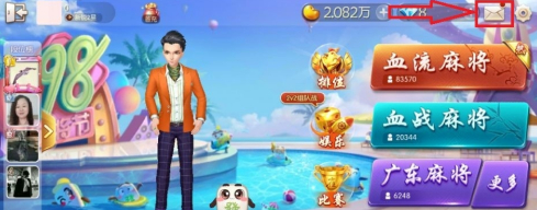 第四步,赠送好友游戏豆后,好友就可以进入到游戏页面,在页面的右上角可见“邮箱”图标。