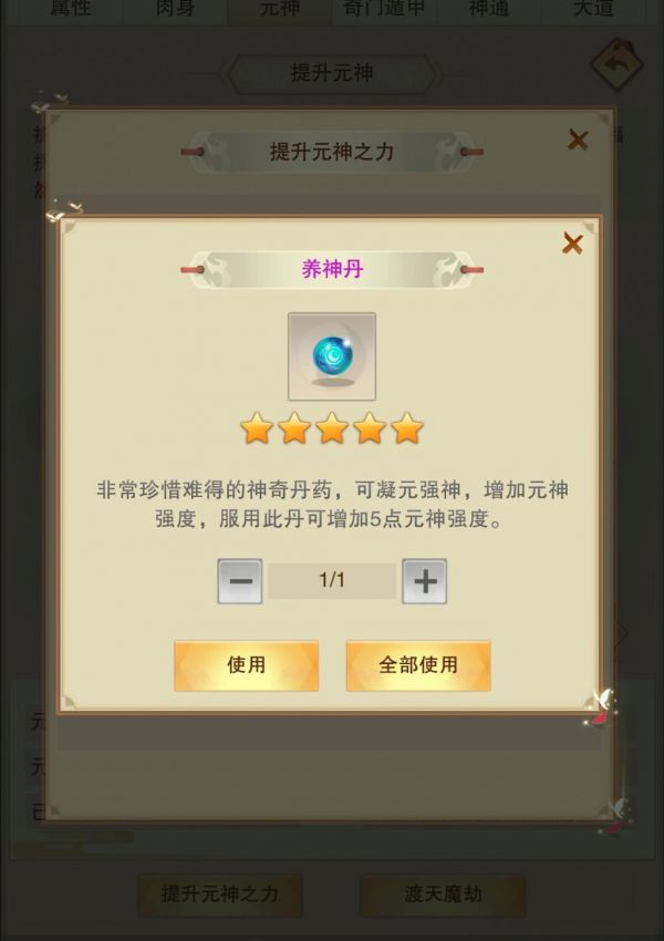 提升元神之力需要服用“养神丹”。