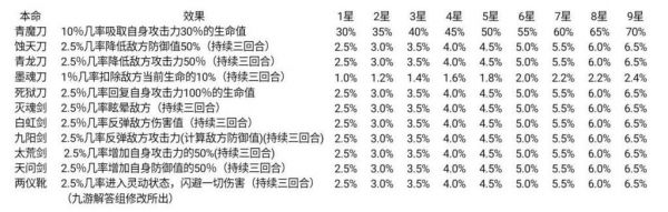 目前本游戏中只能炼制战斗类本命法宝,此类本命各个星级对应的详细效果如下表格所示。