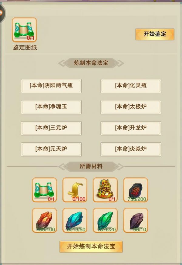 各种本命法宝炼制材料如下: