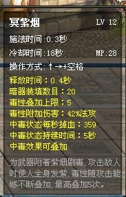 3、紫毒尽量加高,绿毒也是。SP可能会不足,但是这2毒尽量保持在15级以上,经过试验,20级绿,18级紫打20下能打掉80%的HP,毒伤消弱了3分之2依然是很虎的技能。