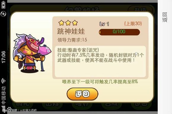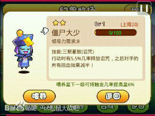 好了,重点来了,封系幻兽又是一个很逆天的存在,它能随机封掉对手的一个武技,这对于武技已经完美的鼠来说是很致命的,因为他们没有一个技能是没用的,可以说封掉完美武技鼠的任何一个武技,都能有效地削减对方的战斗能力,其中,又以封掉死老鼠,屎坨坨,装死,小宇宙爆发最为致命。死老鼠和屎坨坨,这2个3宝里最为重要的2个神器,一旦被封住了,可以说你的胜率将会降到一半,特别是后期玩家们属性都很高的情况下,没有他们降属性,是很难胜利的。而小宇宙,装死这2个公认的反叛神技,一旦被封,也是不容忽视的,要是你装死被封掉了,搞不好对面1个野球暴击你就赛由啦啦了,现在也经常见到有人带2个甚至是3个娃娃的,这3个要是把你的老鼠,屎坨坨,装死给封了,试问你还拿什么跟人家打呢?建议至少备一个这类幻兽吧,每个区都适用。