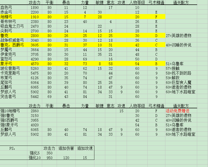 1,目前可见,凯伊可装备的弓共20种,眼花缭乱之余,制作的成本也不菲。所以,我觉得计划好过渡的武器,定位好最终的神器,才是彼此最需要,最迫切了解的范畴。