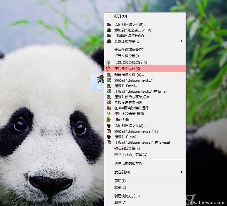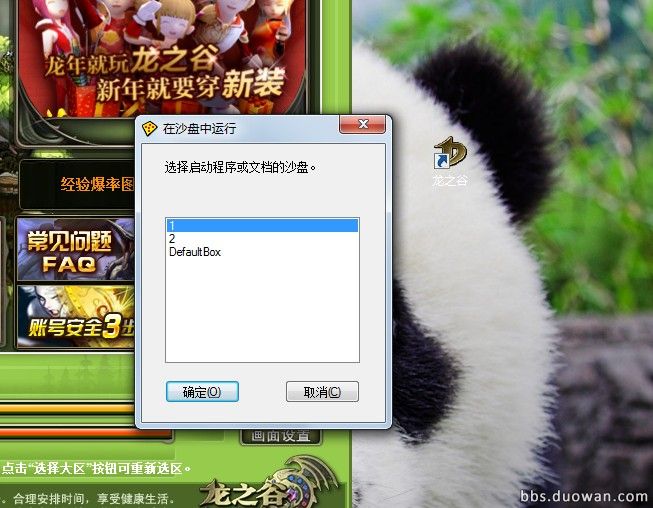 右击龙之谷图标,点击在沙盘中运行