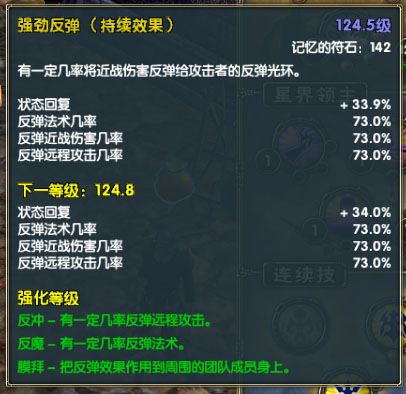 强劲反弹:本体增加近战反弹率。(圣域2的反弹是自身不受伤害,是一个防御属性,可以看作另一层闪避,反弹多少伤害倒是次要,可以把负面效果也反给敌人。)