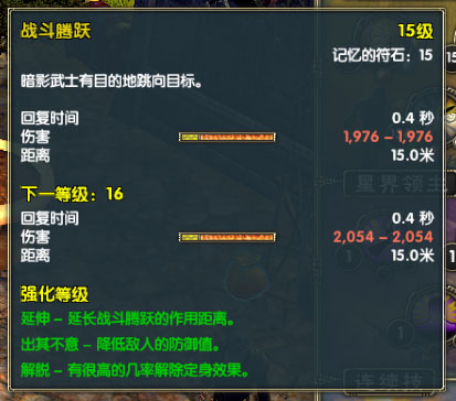 战斗腾跃另外作为赶路和开图战技,回复时间不能太长,只在不影响连跳的情况下适当提高战技等级。