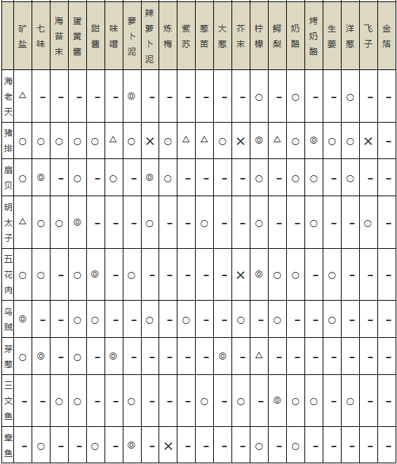 海鲜寿司物语》中,不同的食材之间相互搭配产生的效果也是不同的,当然,产生的效果有好也有坏,这次小编就给玩家们准备的《海鲜寿司物语》中全部的食物相性,希望能对玩家们有所帮助!