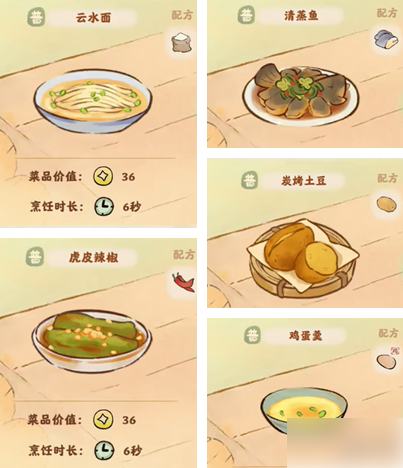 桃源深处有人家食来运转中有三类菜谱,用户们通过收集食材解锁并制作美味的菜肴,很多小伙伴不清楚配方是什么,下面小编为玩家们整理了食来运转普品菜谱,感兴趣的。