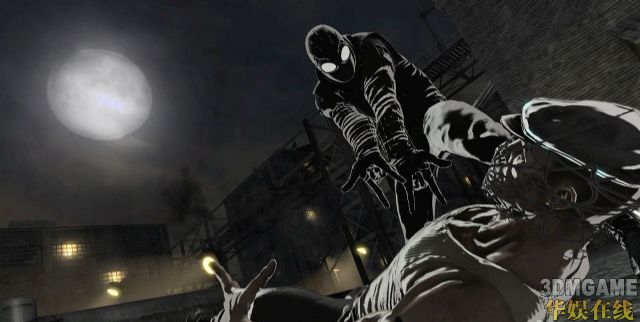 在玩了Noir以及Ultimate中的蜘蛛侠之后,我相信设计者所言非虚。在Noir中我必须躲藏在阴影中等待出手的时机。我藏在火车车厢(物件上有箭头指示的就可以藏身其中)中,等待在一旁闲谈的警卫的手电照向别处的时候下手。在向火车场推进的道路完全是一寸一寸的前进,因为一路上都是要处理的巡逻队还有需要解救的人质一类的事情要处理。Ultimate中的蜘蛛侠则大不一样。如果说Noir中的蜘蛛侠是让敌人到死都不知道是怎么死的类型的话,Ultimate中的蜘蛛侠则是一口气跳进一群敌人中然后解决他们的类型。如果说秘密行动是Noir中是真理的话,那么在Ultimate中你就应该大肆杀戮,而Ultimate中蜘蛛侠的各种技能也正是为了这个目的设计的。Ultimate中蜘蛛侠能够挥舞手臂使用蜘蛛侠标志性的网鞭来攻击敌人,并且能够从胸口发射出尖刺,在网住了敌人的头之后还可以释放出沿着道路快速突进的穿刺。