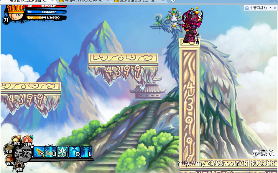 跳上去后向左发一个水幻影,再向右走,掉下来的时候按水幻影传回去,就可以调整方向了.