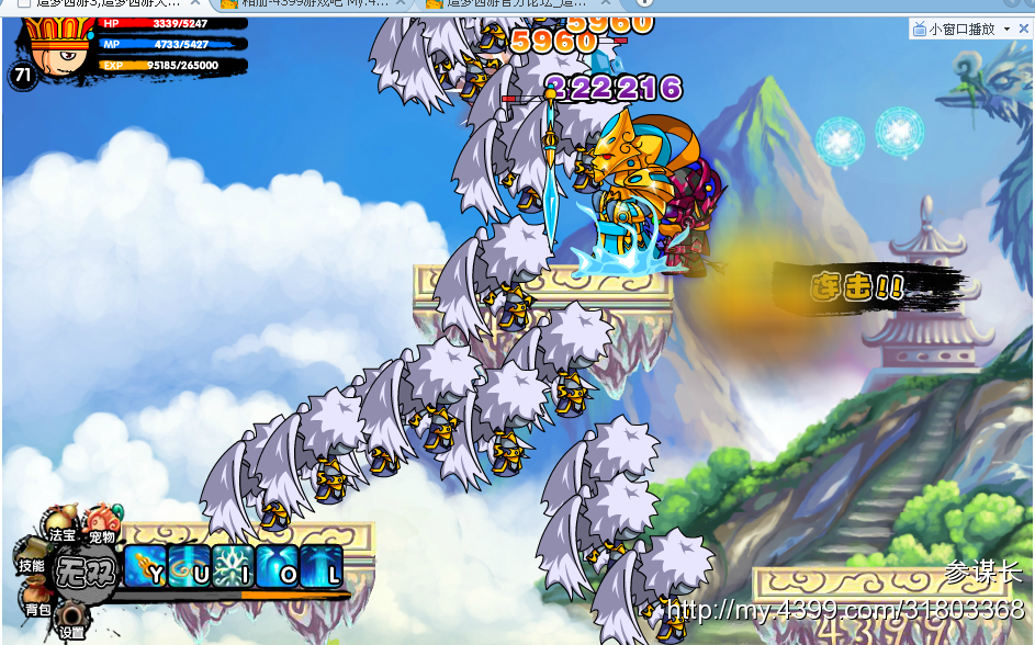 技能冲刺,最应该当心的的技能,因为伤害随他的血量的减少而增加,后期可到几千,对于贫血的唐僧来说最应该躲掉(二段跳或水幻影).