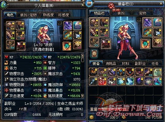 附魔徽章:华丽施放、智力、魔法暴击、移动,附魔18-20魔攻、5魔暴、12暗强卡。暂时没有白金徽章和礼包宝珠、没有红字装备。