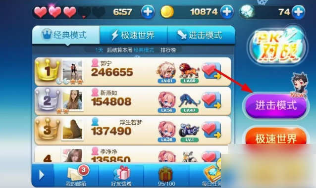 天天酷跑是一款非常好玩的横版2d跑酷类游戏,这款游戏里面的玩法模式很多,很多模式的玩法都是比较特殊的,除了经典和排位,还有一个进击模式,这个模式很多用户都不知道怎么玩,那么不知道怎么玩的小伙伴一起来看看天天酷跑进击模式玩法介绍吧!