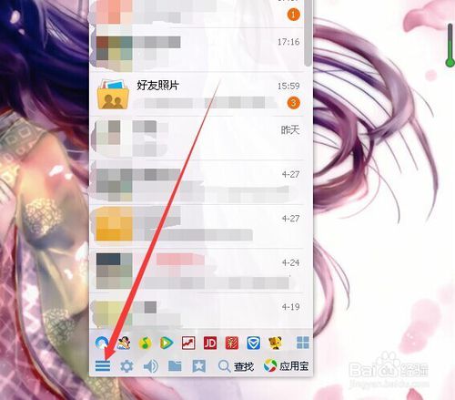 进入QQ页面后,我们点击左下角的“主菜单”键,可以看到QQ的很多功能。