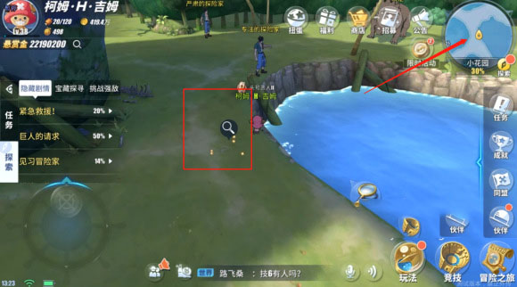 1、首先前往地图的左上角,找到兴奋的冒险家对话接取任务;