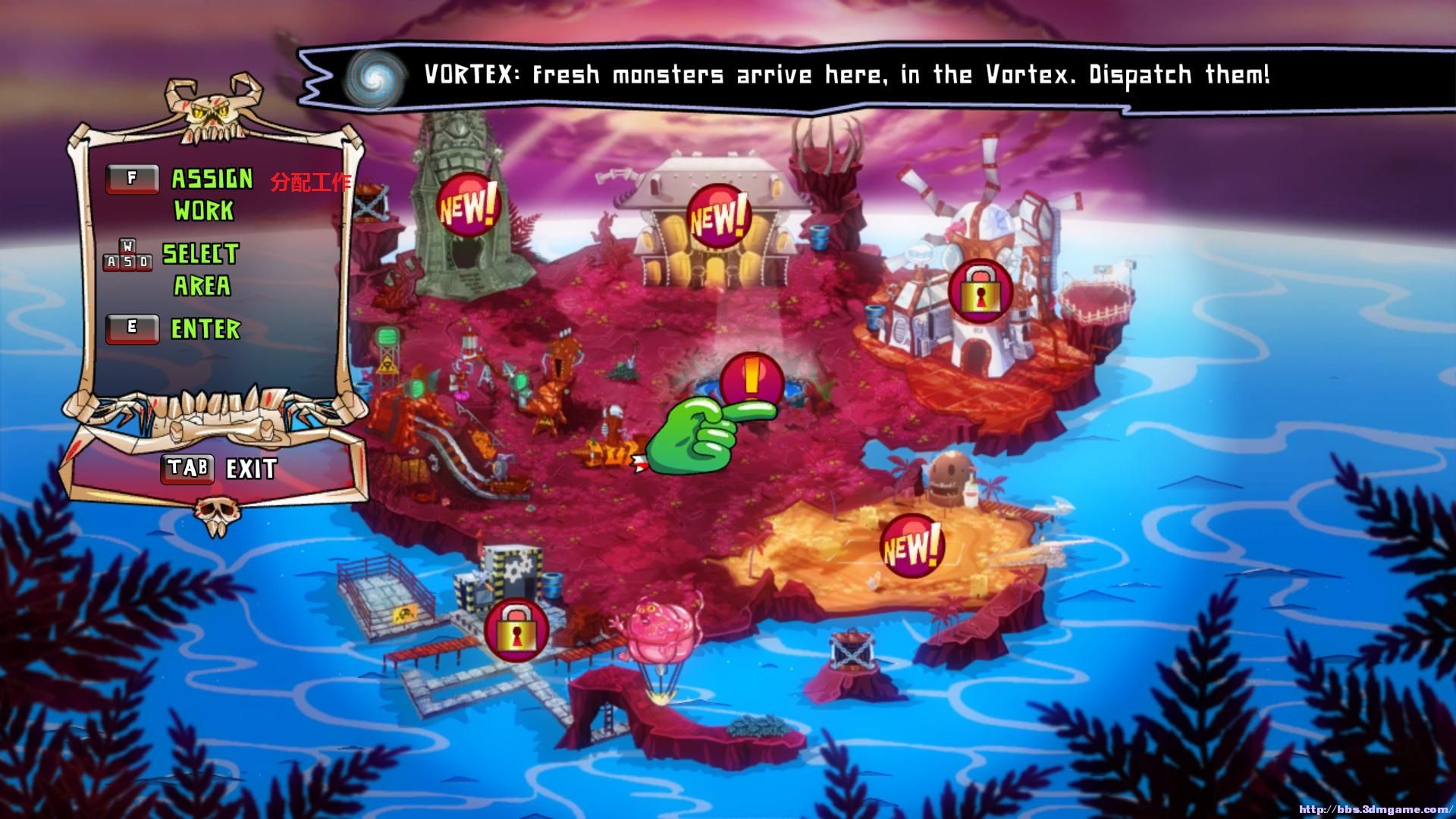 进去可以管理你的岛,让怪物为你干活赚钱。。。(如果你杀了12个小BOSS,那么就会有12个怪物让你分配)