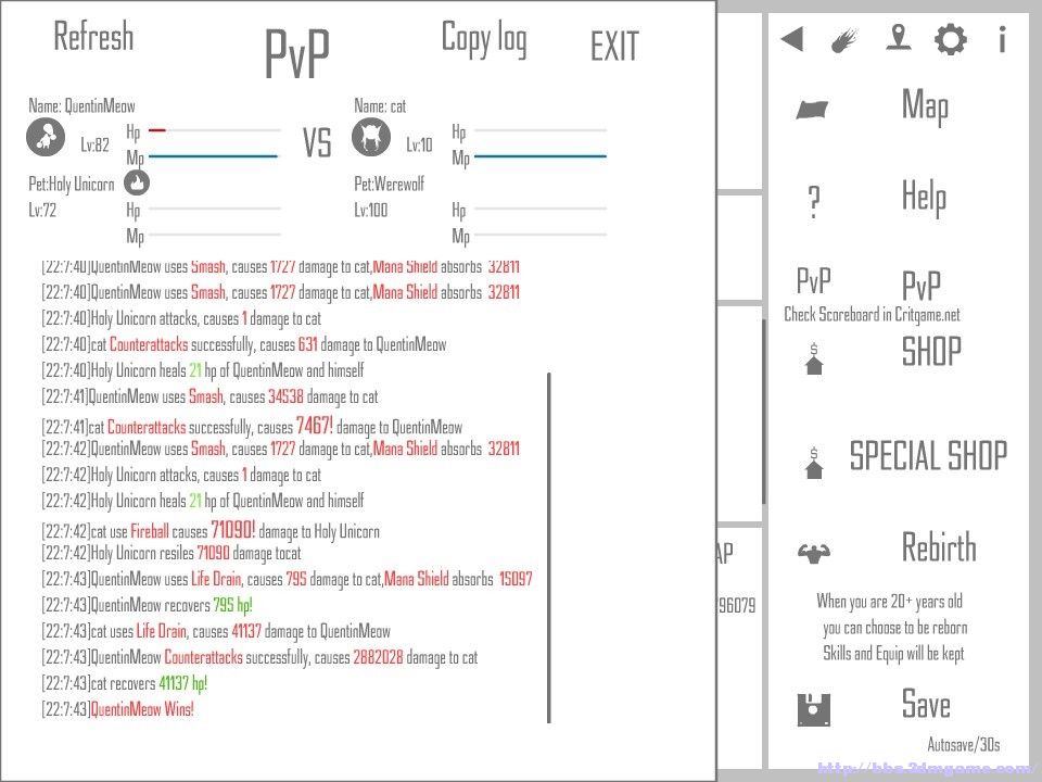 PVP尽管cat是个挂逼,可咱用反击打败了cat。话说如果这伙不用近战技能的话就真的无敌了。