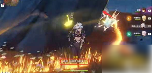 4、放置完岩柱子之后,使用大剑往右前方的大石头上砍一刀,然后地面就震动起来了