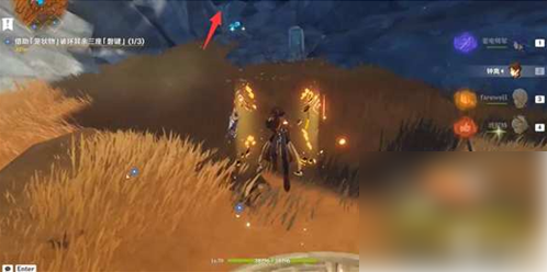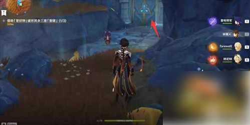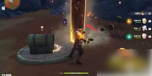 3、往前走就可以看到一个放置了宝箱的祭坛,在祭坛旁边使用钟离放置一根岩柱子,如图所示