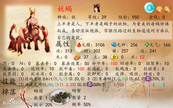 妖蝎的特点是敏高,而且攻击高概率附加中毒效果