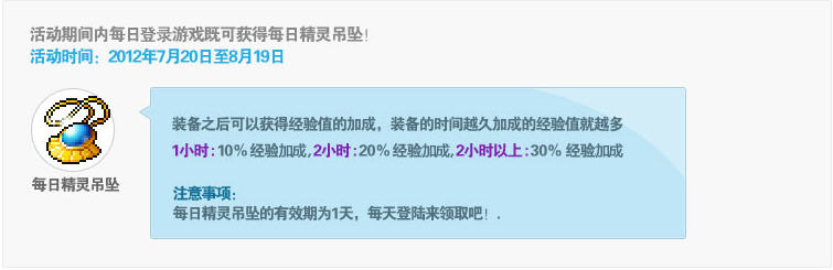 用户从7月20日起每天登陆游戏会自动获得精灵吊坠