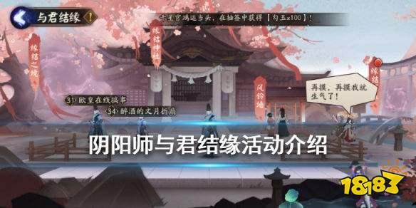 河童正在发愁如何向鲤鱼精表达自己的心意,阴阳师大人们可以通过在缘结神社各个玩法中获得的同心结来决定河童的恋爱走向。