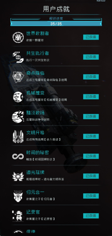 8.追光延续,这个成就就是共生二号星球,并且在8号星球遇到追光者文明的时候刷完标签不打击让蘑菇人最后存活即可(你如果达成了我说的条件没有获得成就,请查看你是不是没有更新)